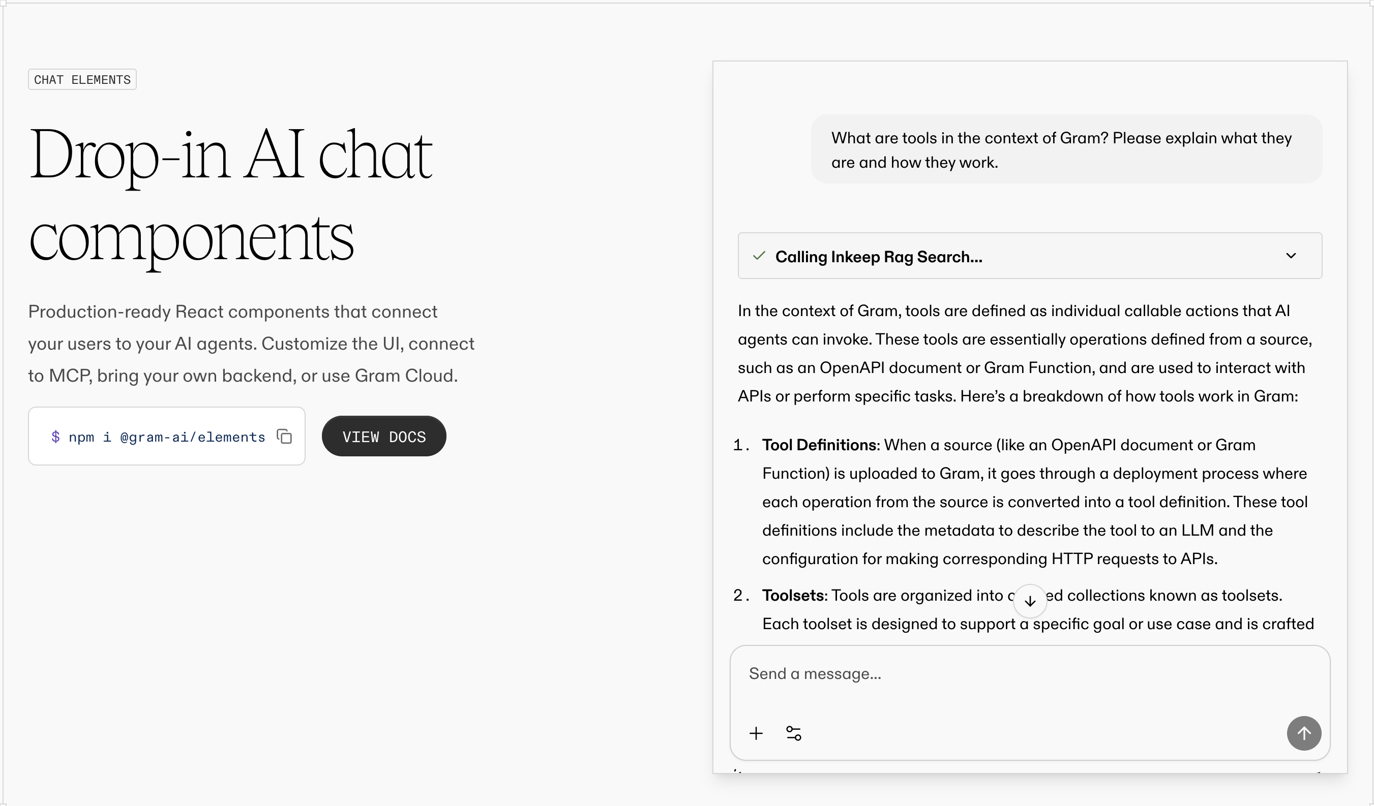 Gram Elements now supports chat threads and historical message tracking.This release introduces conversation threading capabilities, allowing users to maintain context across multiple interactions and access previous messages within a session. This enables more natural, continuous conversations with MCP-powered chat experiences.